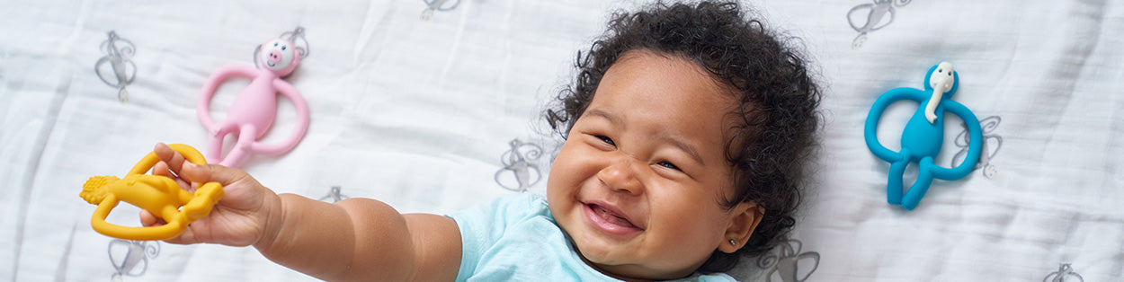 Fun, flexible and the perfect size for tiny hands, Matchstick Monkey teething toys help make teething simple for parents and babies.