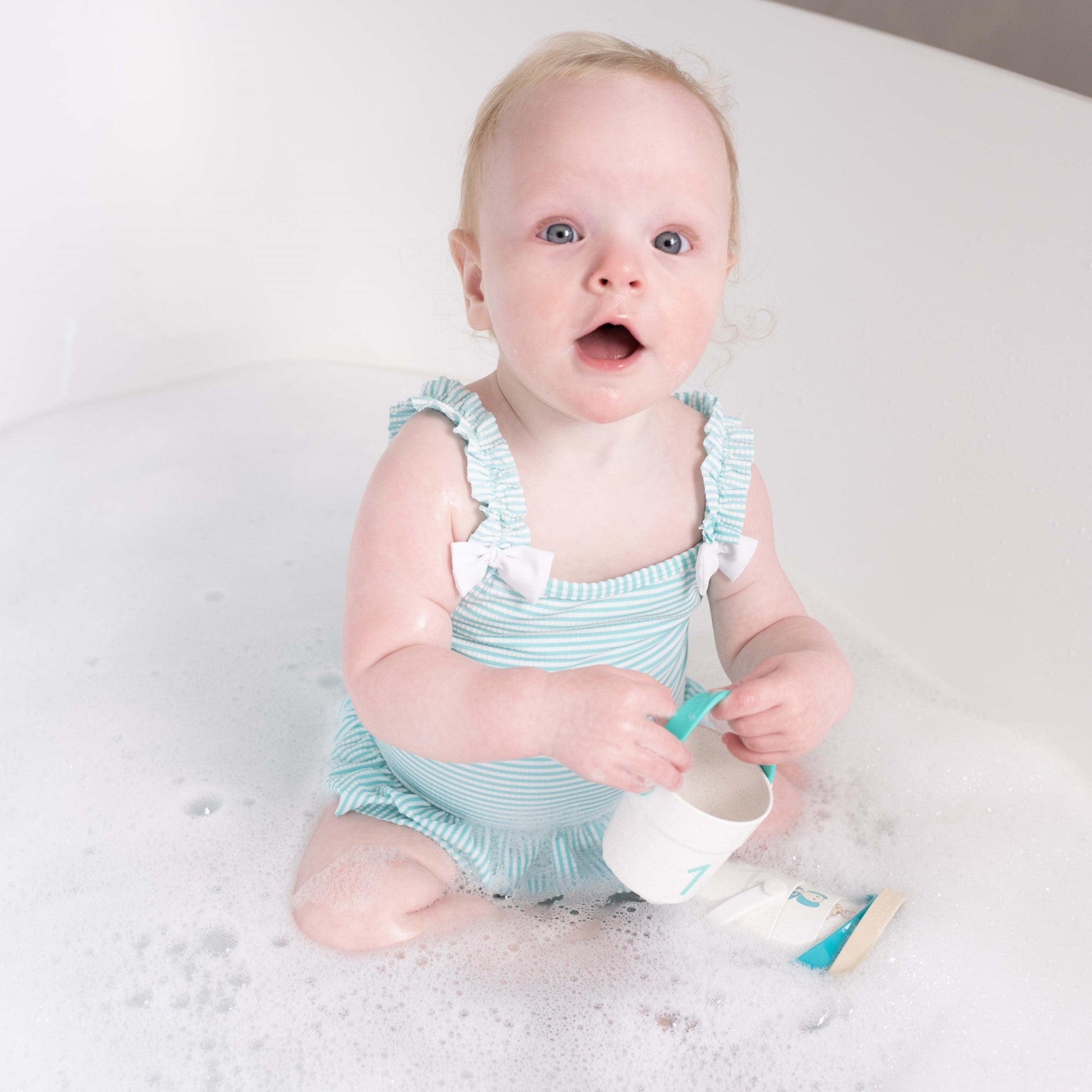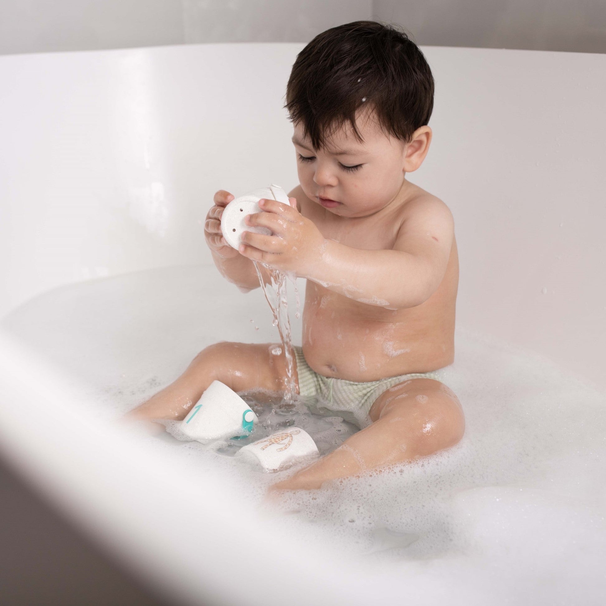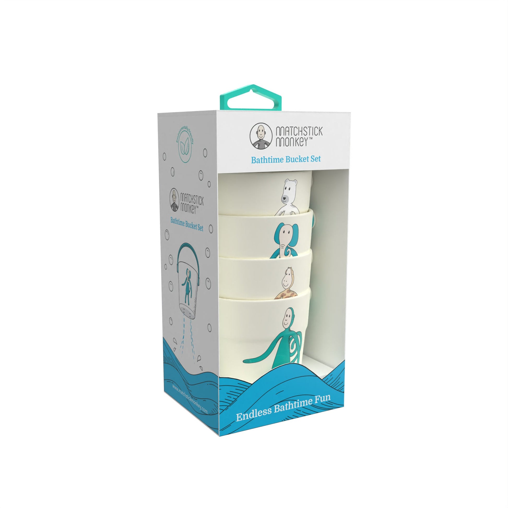 The Matchstick Monkey Bathtime Buckets come in a set of 4 and are the perfect addition to toddler's bath time toy collection. The sprinkle holes also encourage rain-shower play and support hair wash training. Your child will have endless fun stacking the buckets and familiarizing themselves with all the animals and numbers!