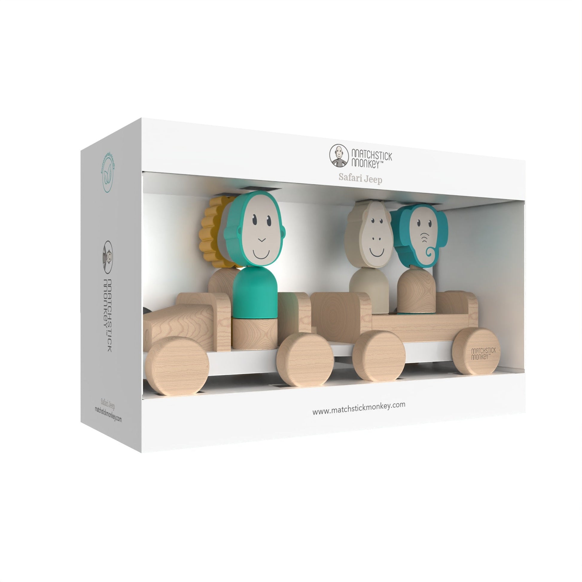 Get ready for an animal adventure with the Matchstick Monkey Wooden Safari Jeep pull toy! This wooden toy helps develop children’s fine motor skills and hand eye coordination as they learn how to stack the pieces in different ways, while encouraging animal recognition. The cotton string means they can pull the jeep on their own safari around the room, providing endless creative playtime fun.