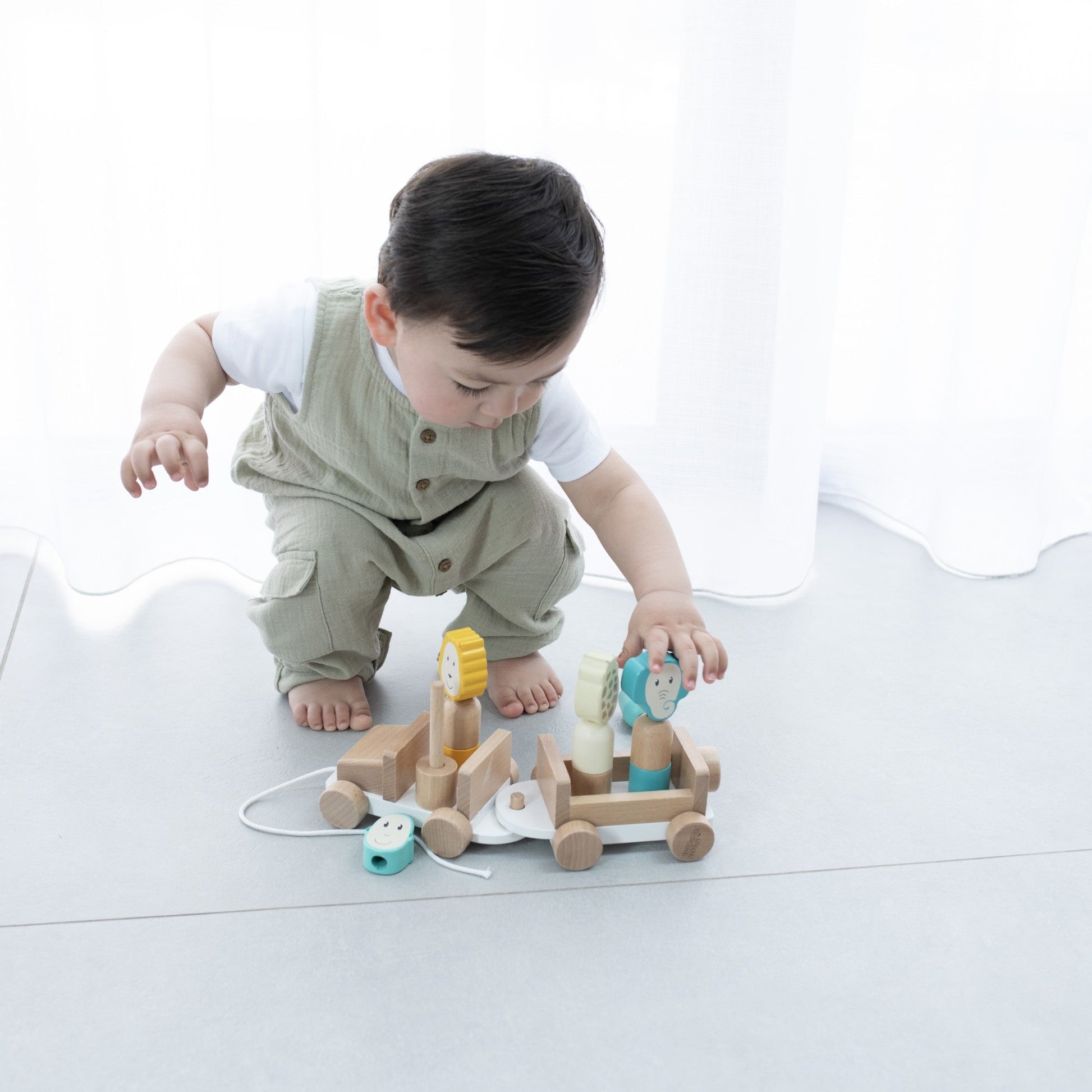 - Encourages imaginative play and helps develop hand-eye coordination and fine motor skills as little ones learn to stack the wooden pieces