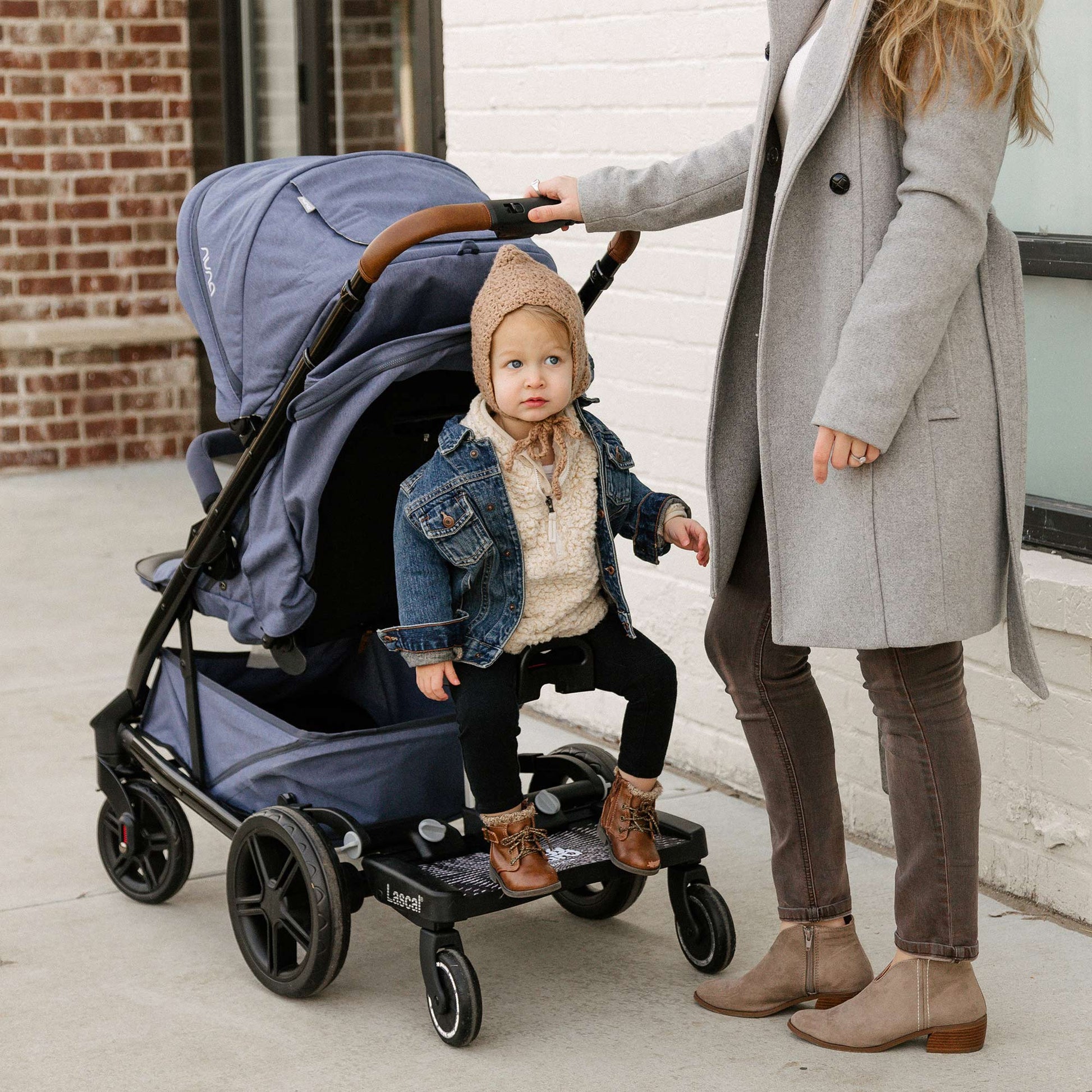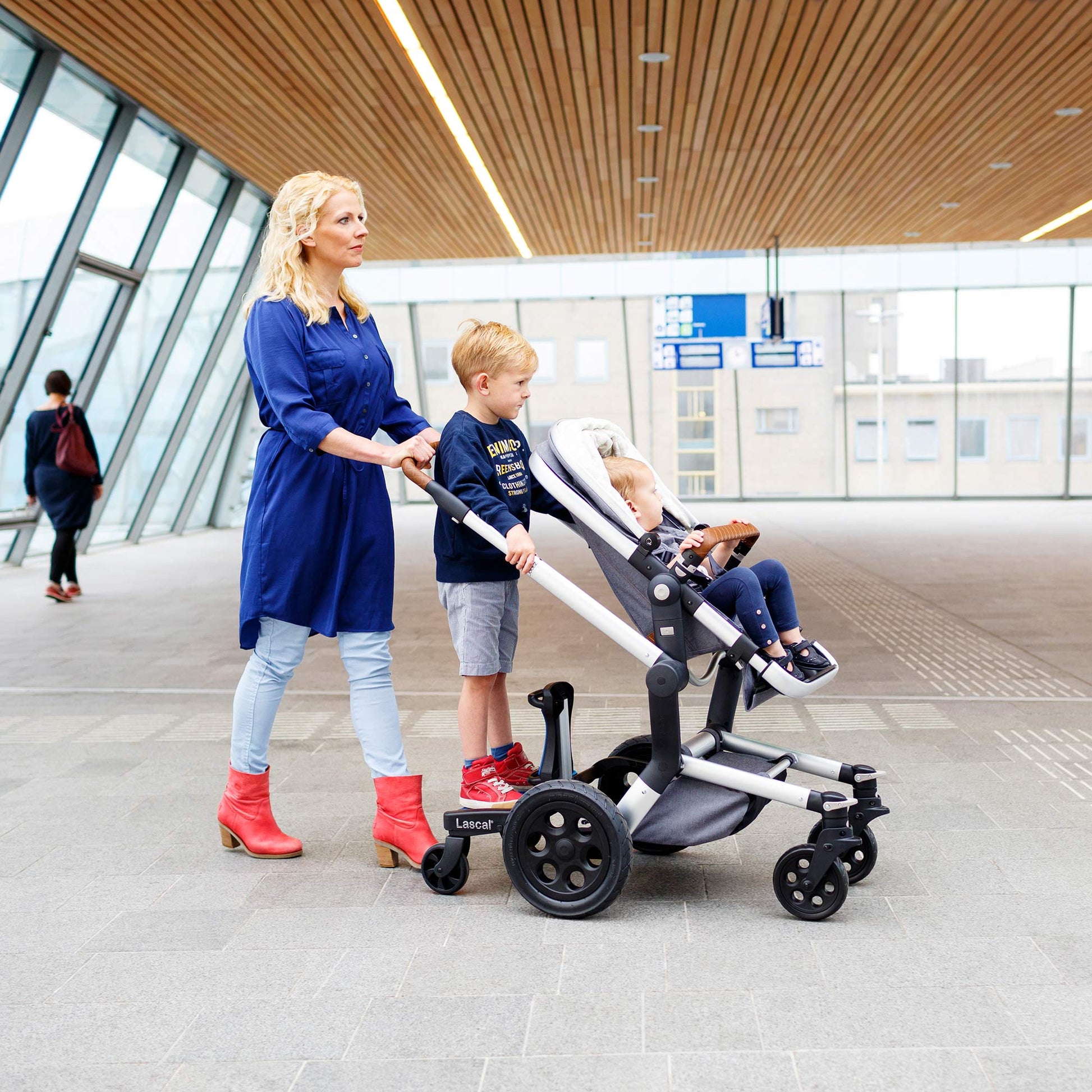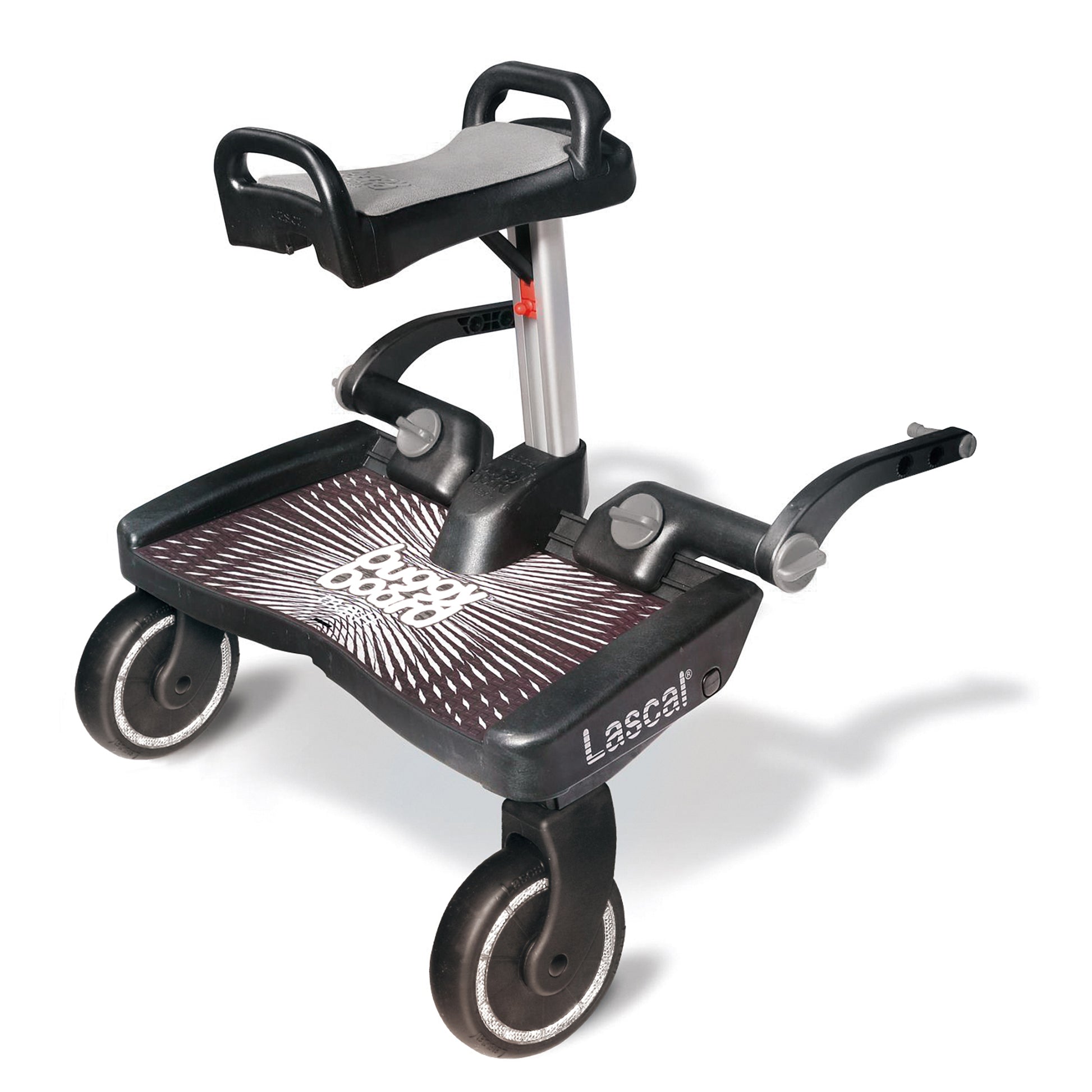 - Lascal's BuggyBoard is the brilliant solution for transporting two children in your single stroller. The older sibling can stand forward-facing on the board or sit rear-facing on the saddle. Eliminates the need for a heavy and cumbersome double or tandem stroller!